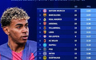 本赛季五大联赛场均积分前20:拜仁、巴萨、皇马、阿森纳前4